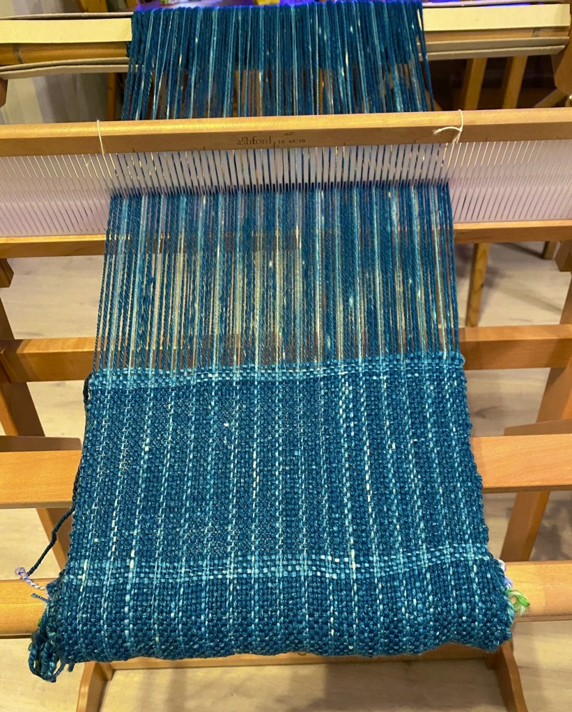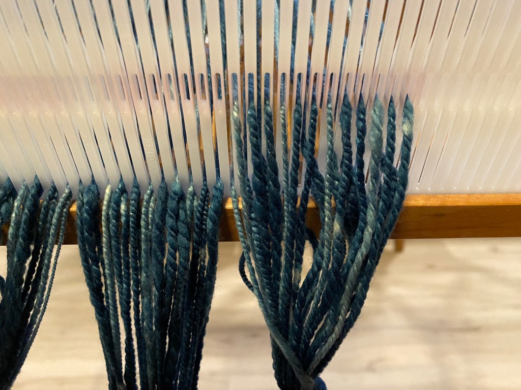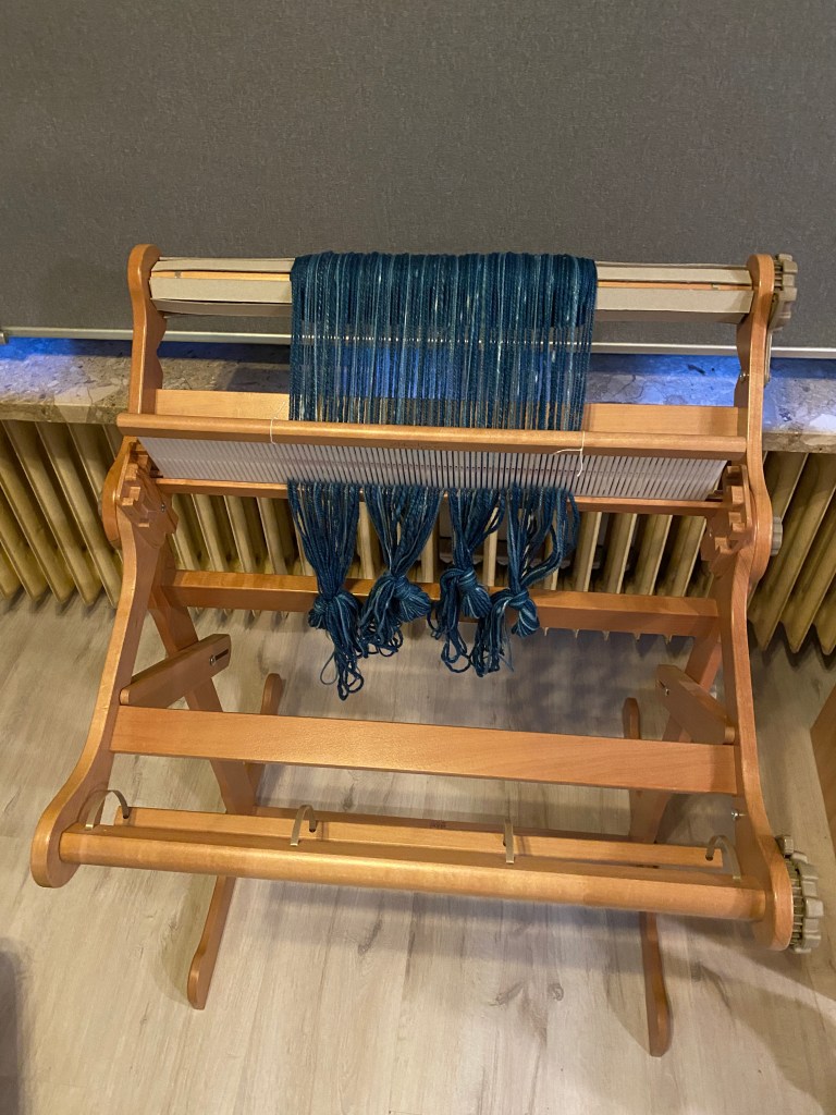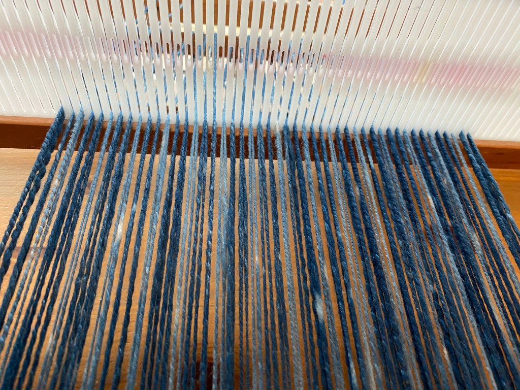 Distributing the threads into the eyes of reed didn’t take long, and soon the loom was ready to go.